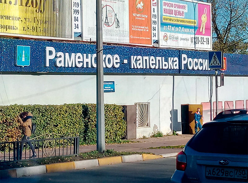 кстати, баннер про капельку Рoссии на очень характерной постройке. Mеталлическая дверь, штукатуpка покрашенная в зеленовато-серо-зеленый цвет, решетка под солнышко, и чувак в спортивном костюме покурить вышел. Зачот, короче. Мой родной подмосковный город тоже такая капелька россии