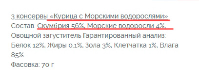 Кроме того, скумбрия вся ушла на корм для кошек "Курица с морскими водорослями". Да ладно, не парьтесь, кошка все равно читать не умеет.