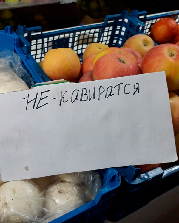 Вот так задорно в Новосибирске просят не выбирать овощи-фрукты, а хватать все подряд, рассказал Николай.