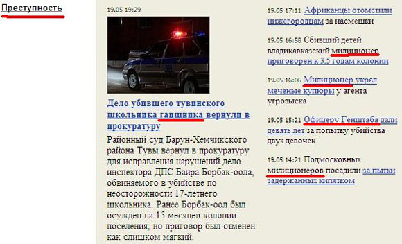 Александр обратил внимание на то, кто именно фигурирует в разделе "Преступность" на "Ленте". Оно бы было, конечно, смешно, если бы не было так грустно.