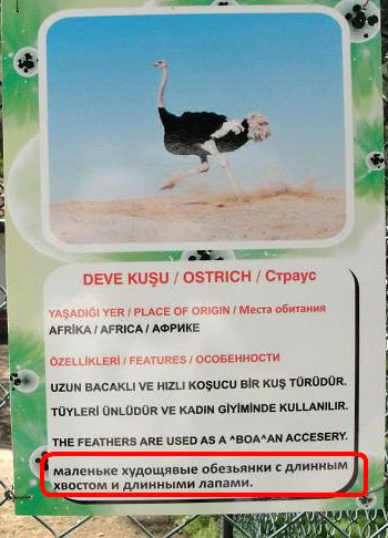 Если вы не знаете, что собой представляют страусы, замечает Стас, то вот эта табличка вам обязательно поможет ликвидировать пробел в образовании.