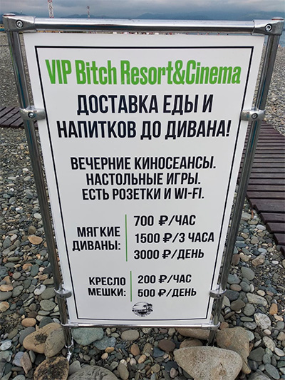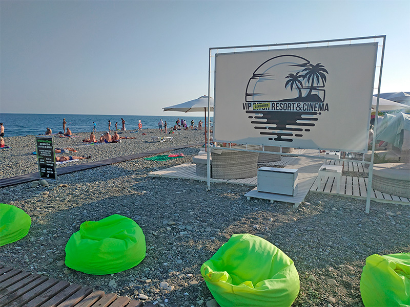 Вот такой VIP, сука, ресорт и синема, вздыхает Foursquare. Снято на пляже Бархатные сезоны, бывший Адлер, теперь федеральная территория Сириус.
