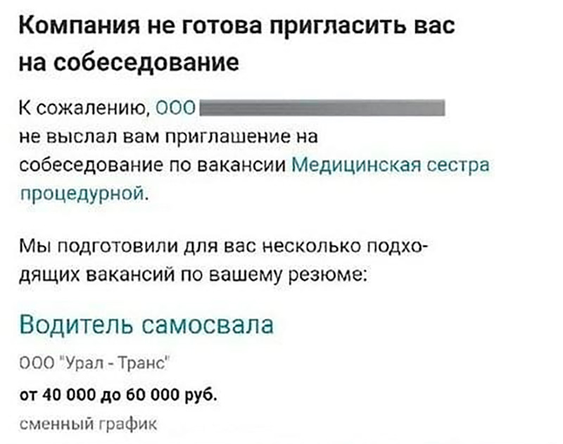 Ну, не пригласила компания на собеседование, да. Зато всегда предложат разумную альтернативу.