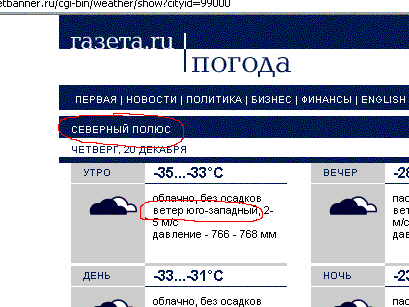 И одно он до сих пор не может понять: где "Газета.ру" на Северном полюсе юго-западный ветер нашла? Ведь на Северном полюсе все ветры - южные...