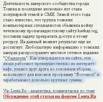 Помните старый анекдот о жутких солдатах из стройбата, которые "такие звери, что им даже оружие не дают"? Так вот, как рассказал Рустан, томские хакеры - примерно из той же серии: