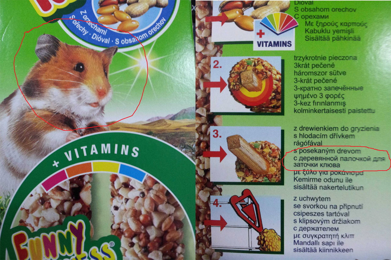 Дмитрий предлагает купить специальный корм для хомячка, к которому прикладывается деревянная палочка для зачистки клюва. Клюва кого? Того долбодятла, который это купит.