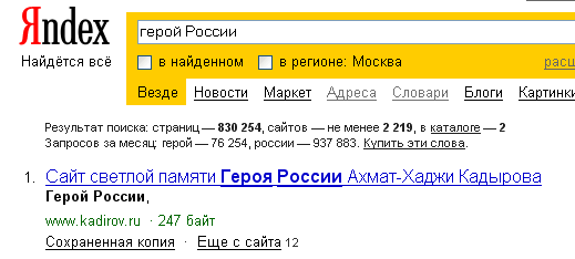 Как вы думаете, интересуется Алексей, кто у нас самый главный герой России? Ответ, разумеется, с легкостью найдется в "Яндексе":