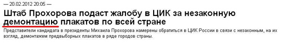 Демонтация плакатов Прохорова - это вообще не баннизм, здесь нет ошибки, подразумевается то, что предвыборные плакаты Михаила незаконно демонтировали, то есть, убрали с улиц города.