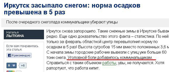 Угу, и с начала зимы 60 тонн снега вывезено. В общем-то, соответствует сугробам в 15 мм.