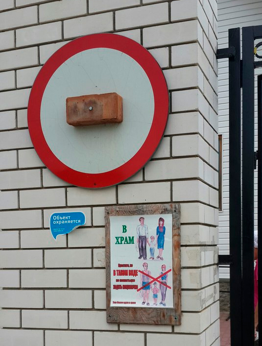 На баннизме с кирпичом есть еще наклеечка "Объект охран-ЯИЦА" 😄