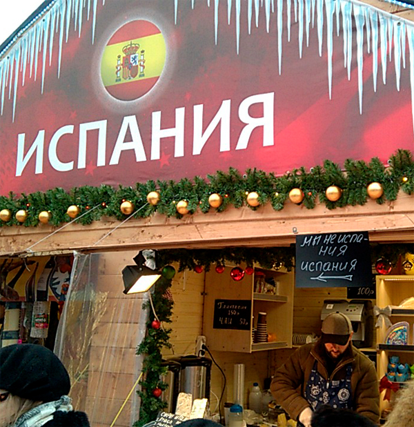 На ярмарке в Питере, рассказал Евгений, появился магазин Испании. Но, что интересно, через некоторое время справа в магазине тут же образовалась независимая Каталония.