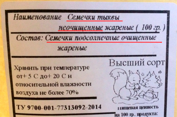 Самое главное, считает Виктор, вовремя ввести в заблуждение покупателя. Хочет он семечки тыквы неочищенные? Да вон они в наименовании! Хочет семечки подсолнечные очищенные? Да вон они в составе. А что внутри там соленый миндаль, ну так кого это, в сущности, волнует, правильно?