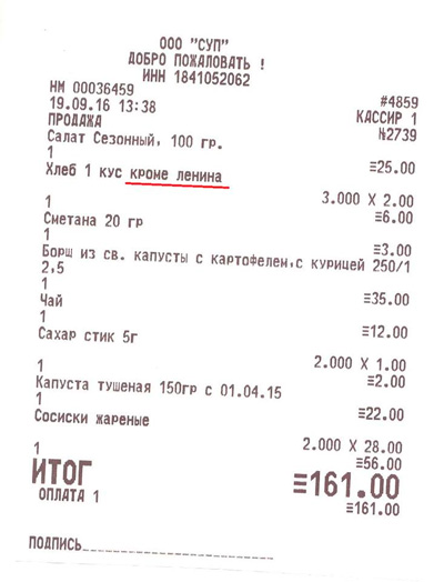 Владиславу выдали очень странный чек, где Ленин - хлеб. Бред какой-то, всем же известно, что Ленин - гриб.