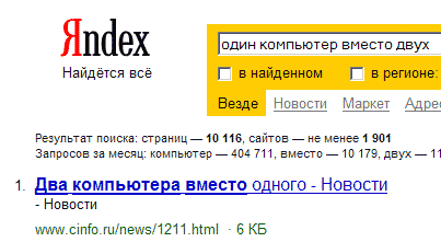 Релевантность "Яндекса", замечает Виталий, иногда уходит в какие-то заоблачные сферы.