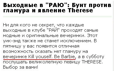Ни фига себе вечеринки против гламура проходят в этом "РАЮ", удивляется Дмитрий. Это не "РАЙ". Это дурдом какой-то.