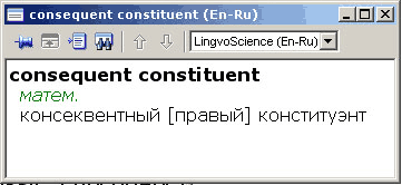 consequent constituent - консеквентная [правая] конституента (высказывания)