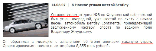 С бентлями в Москве - большие проблемы, сокрушается Алекс Устинов. Все время угоняют. Поэтому, если у вас "Бентли", не поленитесь заблаговременно обратиться в милицию с заявлением об угоне. Можно даже еще до покупки.