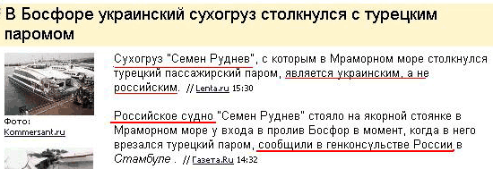 То есть когда судно стояло, оно было российское. А когда поплыло и налетело на турецкий паром - оно автоматически стало украинским. Ученым еще только предстоит объяснить этот загадочный факт.