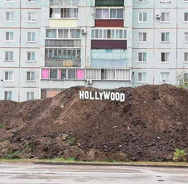 знак "голливуд" хорошо. Типа, летний вариант надписи "Навальный" на снегу