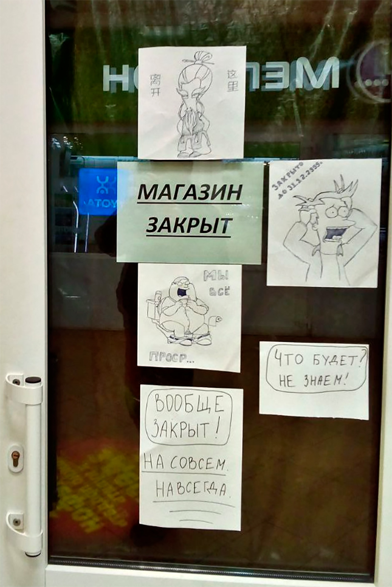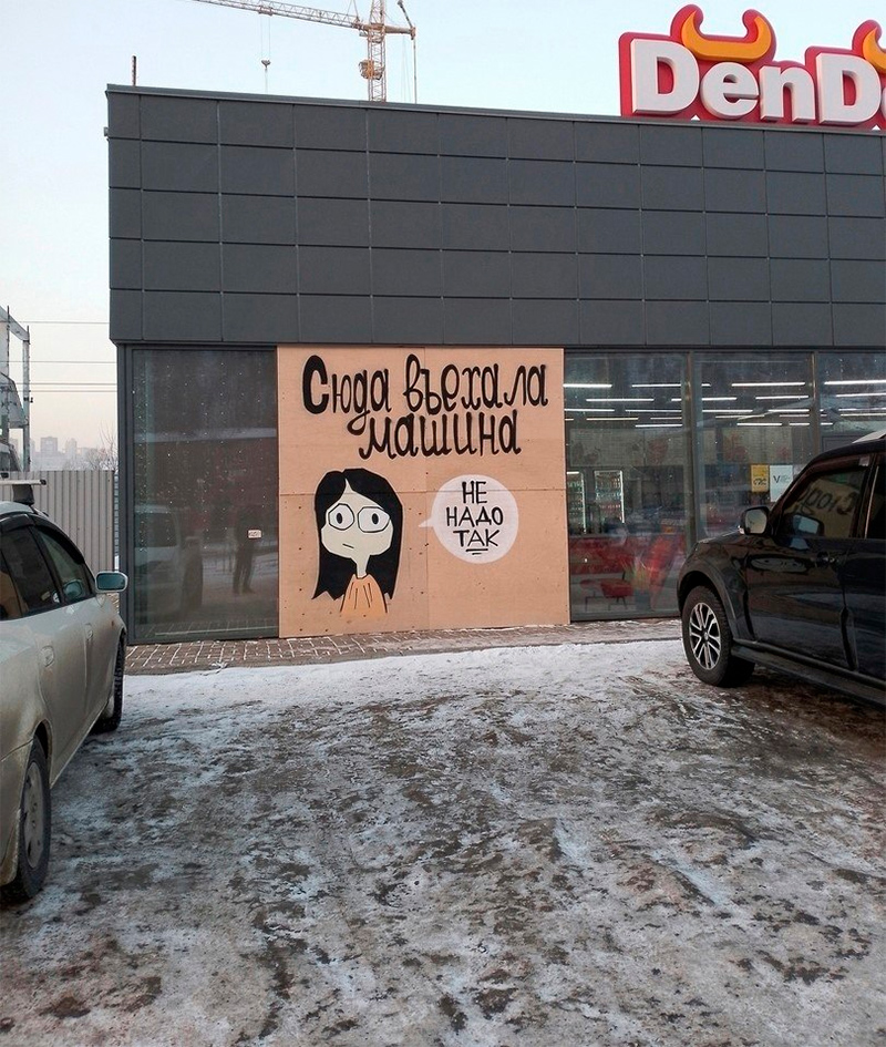 На дощечке расположенной намного ниже по фасаду, отслаивающейся краской были накарябаны менее героические слова: