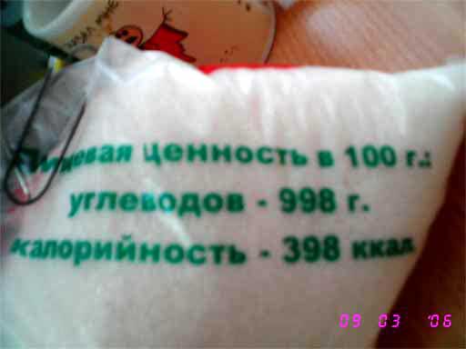 Производители сахара верно поняли приказ гаранта немедленно увеличить в два раза ВВП. И увеличили. Аж в десять раз! Теперь в 100 граммах сахара - почти кило углеводов. Как они их туда запихали - никто не знает. Это, вероятно, ноу-хау.