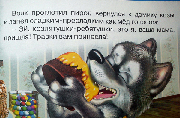 Помнится, коза, напоминает Павел, козлятушкам приносила молоко. А волк, видать, решил пацанов на травку подсадить! Современно, ничего не скажешь.