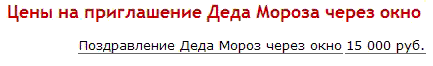 Объясняем. Дед Мороз подползает к нужному строению, делает страдальческое выражение на лице, обезображенном многодневным запоем, и машет варежкой в окно детям. Почему так дорого? Потому что, если вы закажете его домой, дети получат жуткую моральную травму. Так что всего 15 000 рублей за отсутствие травмы и безопасное поздравление Деда Мороза - даже как-то и не дорого.