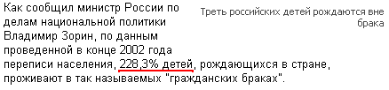 С этим нужно что-то делать, считаем мы с Бубликом! Хотя бы сократить процент вдвое - до 114%. Пусть 114% детей проживают в гражданских браках. Так мы создадим гражданское общество.