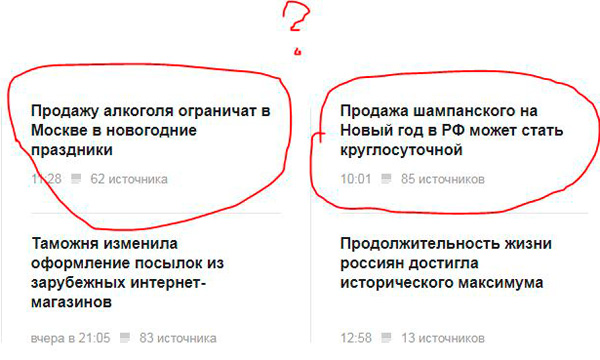 Олег удивляется, почему "Яндекс.Новости" не считают шампанское за алкоголь.