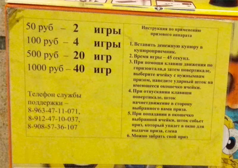 Когда поколение ЕГЭ, вздыхает Дмитрий, пишет инструкцию к игровому автомату - это всегда смешно. И одновременно плакать хочется. А этому существу слово сочетание "по горизонтали" не подсказало, как надо писать словосочетание "по вертикали"? Потому что "клавиша повертикале" - это что-то совершенно психоделическое. Равно как и расстановка запятых, которые существо здесь щедро разбросало в совершенно хаотичном порядке.