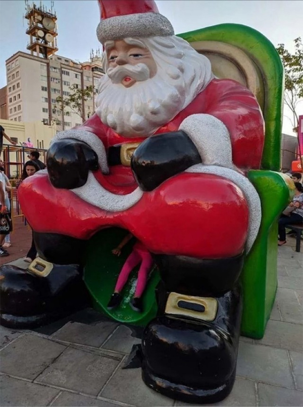 Детские горки бывают очень замысловатые. Но чтобы детишки выезжали прямо из простаты Санта Клауса - это смелое решение!