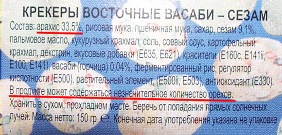 2. "Васаби" в понимании изготовителей - это обычная горчица, и её там 0.04% от общей массы (скорее всего, она там присутствует в гомеопатическом информационном поле).