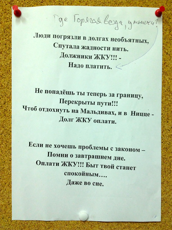 Мария прислала вот такое милое креативное творчество от ЖКУ.
