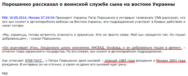 В интервью, офигевает Петр, он не уточнил, о каком сыне идет речь. А журналист РБК так и не догадался, болезный.