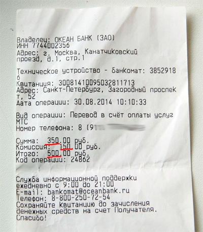 Это не банкомат Океан-банка был, а обычный терминал, навроде Qiwi, коих полно кругом. Обычно с карты на телефон деньги кидаю, а тут получилось, что был в другом городе, а деньги на телефоне кончились...