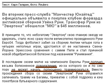 Ну, может, хоть покетбуки бульварного содержания помогут Руни получить долгожданную травму. Или подружка. Впрочем, лучше бы он взял кучу ноутбуков похабного содержания - так оно надежнее!..