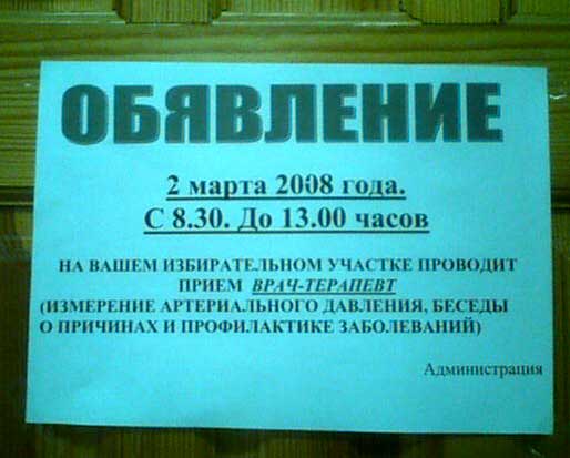 У Владимира на избирательном участке решили, что если вы пошли на выборы, то вам, однозначно, к терапевту!