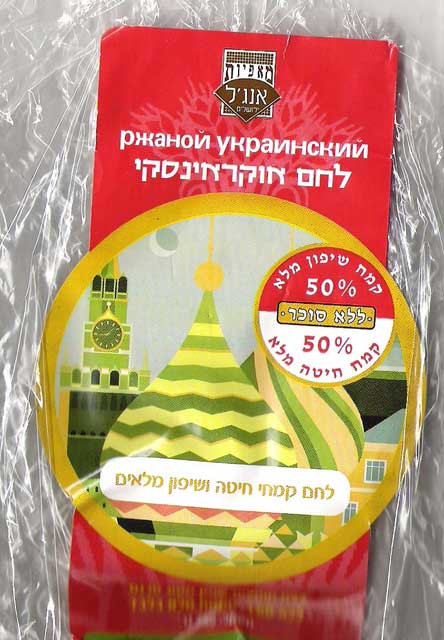 Глобализация - страшная вещь, считает Давид. Ладно еще "Магазин православной литературы Шалом". А вот вам украинский хлебушек с израильскими надписями и Красной площадью на этикетке...