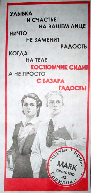 Интересно, задумалась ЯБЛОЧКА, почему немецкий костюмчик так напоминает парадную одежду пионеров из советских времен? И что за гадость, по мнению авторов этой гениальной рекламы, можно подцепить на рынке? Ну, если, конечно, не удаляться с продавцом или продавщицей куда-нибудь за палатку...