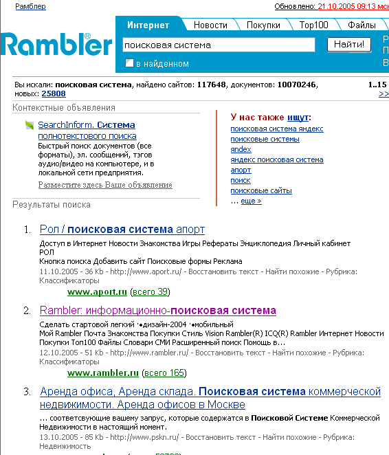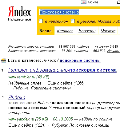 Как это романтично, умиляется Beholderk, что в Яndex при запросе "Поисковая система" на первом месте выдают Rambler.