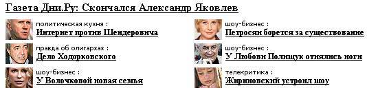 "Дни.ру", предполагает sAs, судя по всему, наконец-то поняли, что совершенно без разницы, какими фотографиями они будут иллюстрировать свои статьи. А ведь и правда - совершенно без разницы...