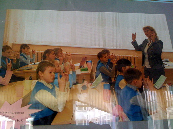 Хм, на фотографии детям показывают индийскую мудру "лань". Что так насмешило, не пойму. Вот Мега Манда Риновый Мохито (вкусное, кстати, мороженое, и зачем было над ним так издеваться) и особенно листок с текстом на китайском о переписи понравились. Спасибо ещё, что не полными иероглифами набрали...