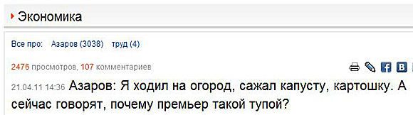 Потрясающий заголовок прислал Бад Леша. И действительно: вот пусти министра в огород...