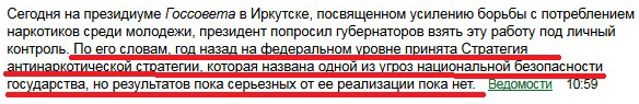 Борьба борьбы с наркотиками явно дает свои плоды, считает Артем. По крайней мере, среди отдельно взятых новостистов, которые явно перекурили Стратегии антинаркотической стратегии.