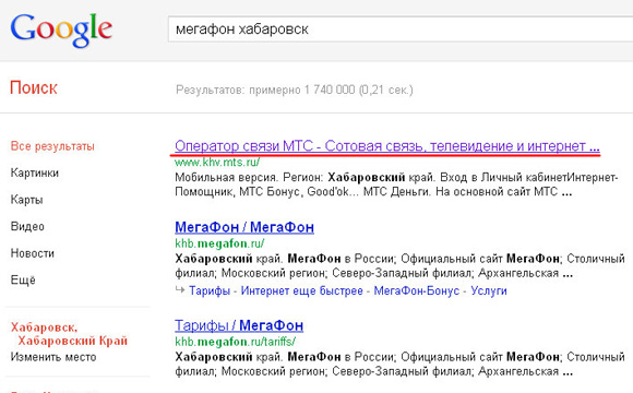 Прикол не про Мегафон, а про релеванность. Скоро дойдёт, что до на запрос "Ёлка купиь Хабаровск" первой ссылкой будет ибей.