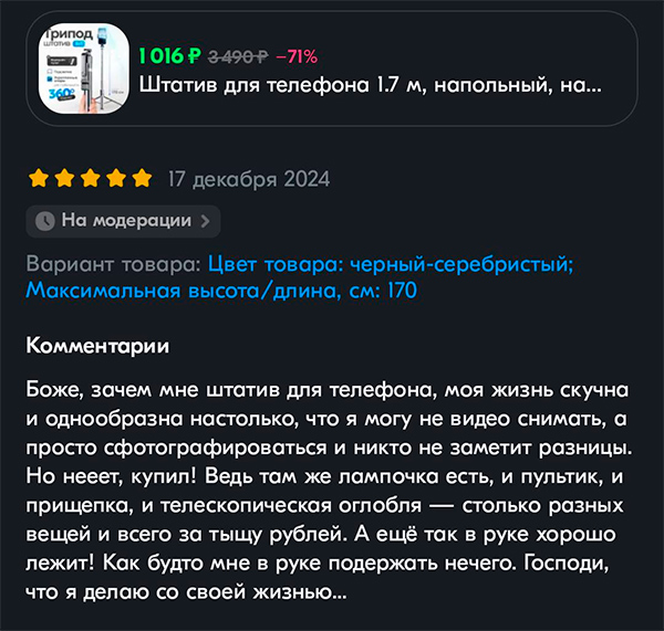 Отзывы от товарах очень напоминают проделки Глеба Клинова.