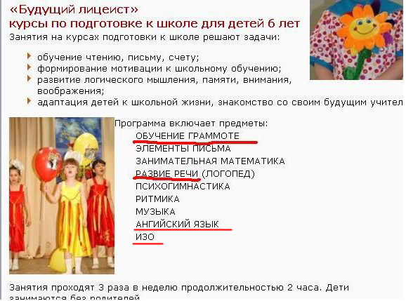 Какие прекрасные курсы по подготовке, умиляется Елена. Ангийский язык изучают, обучают граммоте! Странно только, почему написано не "Будующий лициист". Это было бы логичнее.