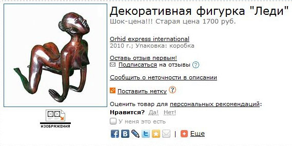 Если у вас есть друзья, способные оценить истинную красоту, замечает Mari, купите вот эту декоративную скульптуру. Посмотрите, сколько в ней достоинства, благородства и изящества! Настоящая леди! Да и цена действительно шокирует...