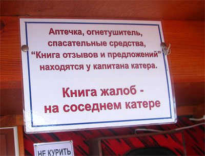 Душевная табличка, считает Катерина. Капитан катера явно с чувством юмора.