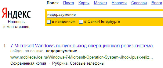 А.Г. как-то не очень понравилось то, что "Яндекс" выдает первым по слову "недоразумение".